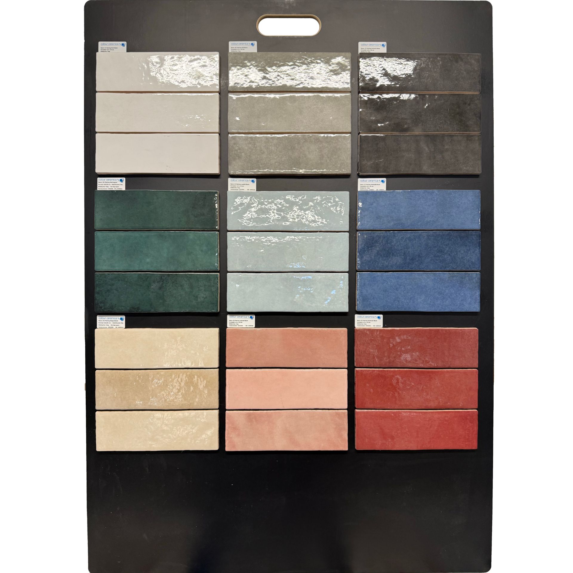 Folextavle med 9 lagerførte farver i CC Petring serien i format 6,5x20 cm.